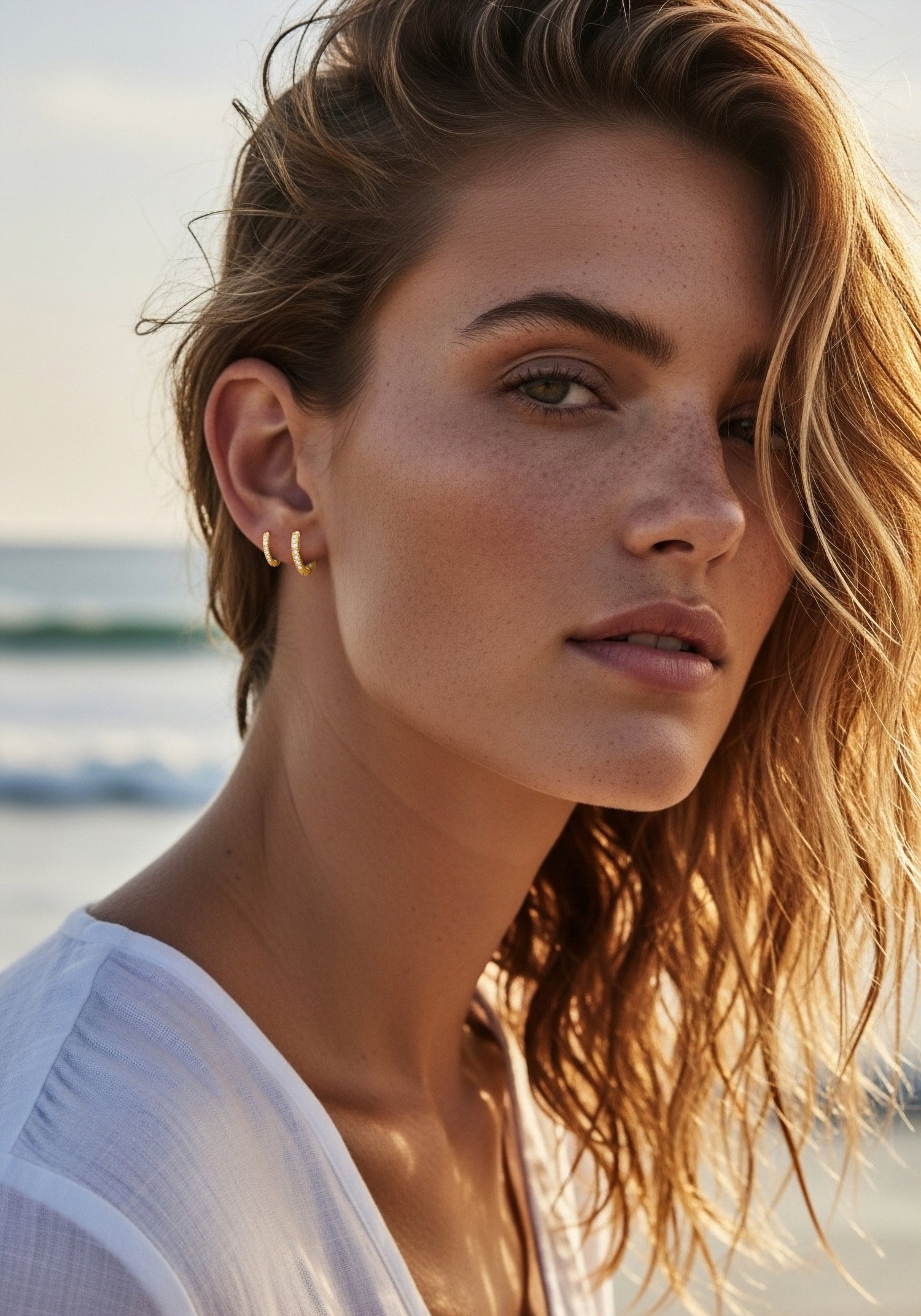 The Coastal Huggies are tarnish-free, hypoallergenic, and beach-ready — no case, no stress. Wear them from surf to sunset and never think twice.