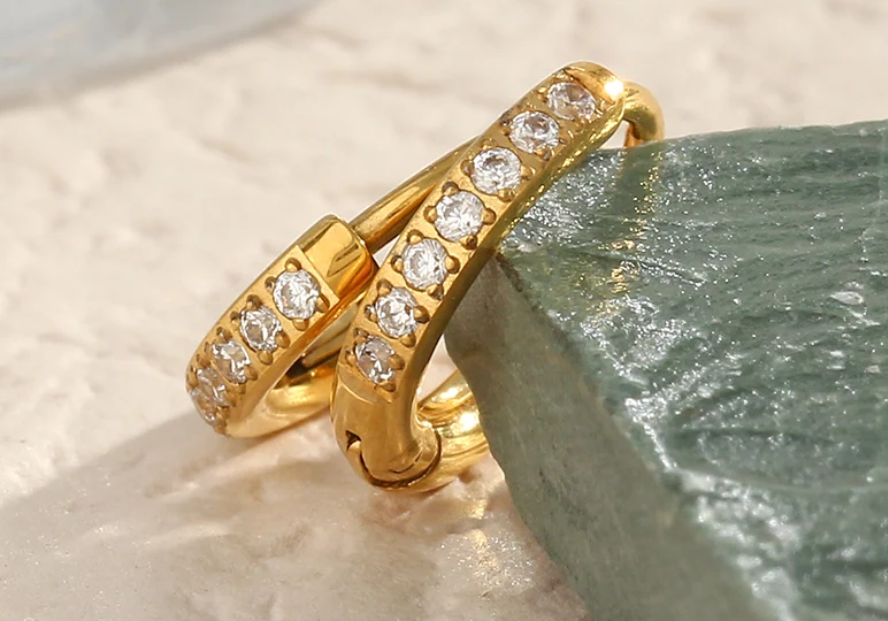 Coastal Huggies by Seven Tide™. Simple. Shiny. So easy to wear. These ultra-lightweight hoops bring just the right amount of glow — with a snug fit and subtle sparkle from 3A zircon accents. Made from waterproof, hypoallergenic stainless steel and available in two sizes (8mm and 9mm) — the *Coastal Huggies* are your daily go-to, from salty swims to sunset spritzes.