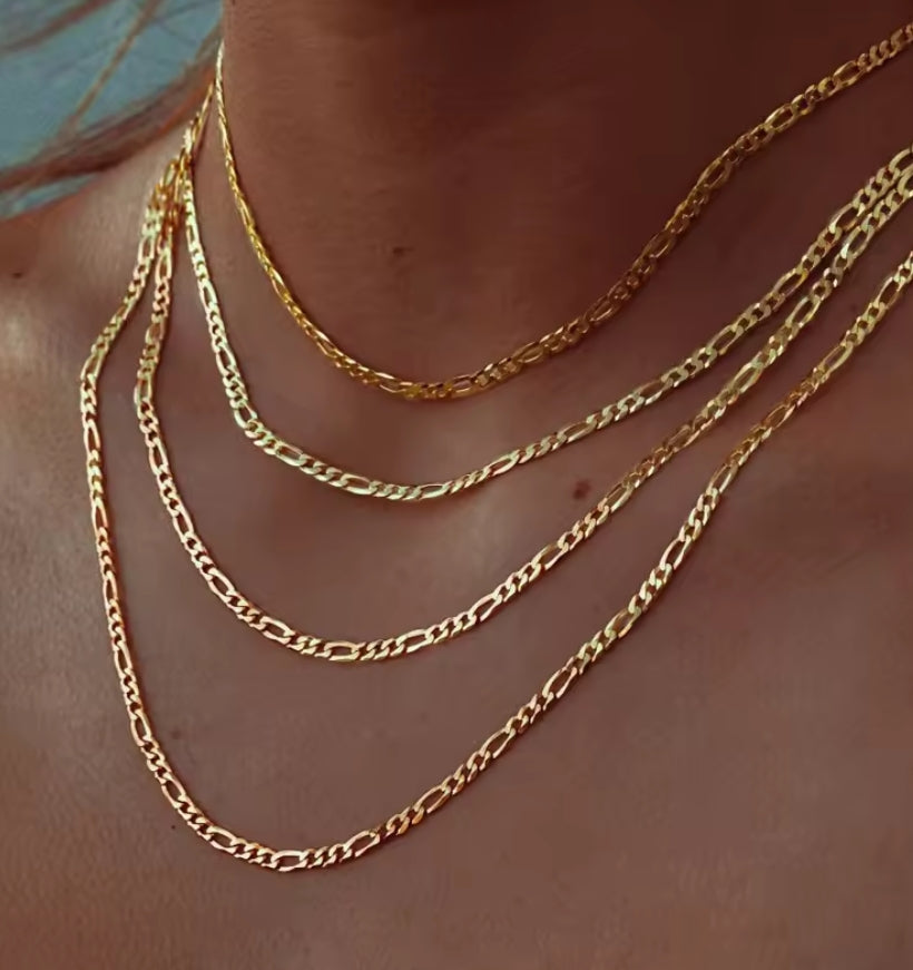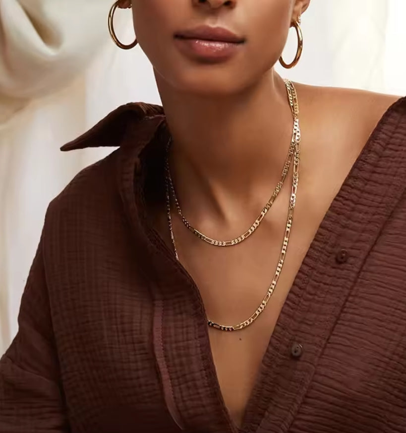 - Timeless Figaro Links: A sleek, minimalist chain that’s made to layer or shine solo — always in style, never trying too hard.